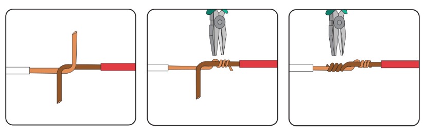 - Sambungan kabel listrik Bolak Balik . sambungan ini bisa dibilang cara menyambungkan kabel dengan menggunakan kawat tembaga tunggal. Meski dibilang lebih sulit, sambungan ini bisa dibilang lebih kuat dan kokoh. ( Gambar terlampir )
